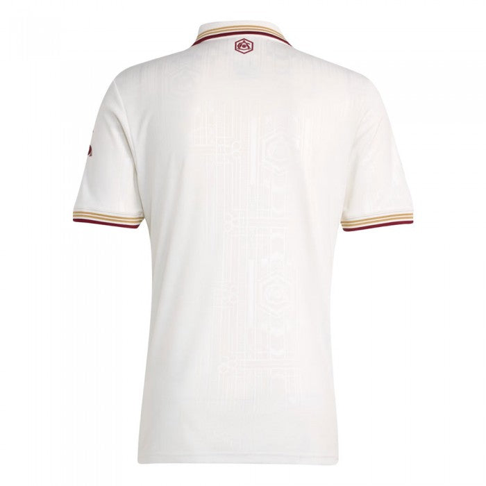 Celebrate the Gunners with the Arsenal 25/26 Third Kit – Fan Edition. Featuring a clean off-white base with rich burgundy details and a classic polo collar, this kit is a stylish tribute to Arsenal’s heritage. The embroidered cannon crest and retro Adidas logo give the shirt a timeless look, while the Emirates sponsor ties it to the modern era.