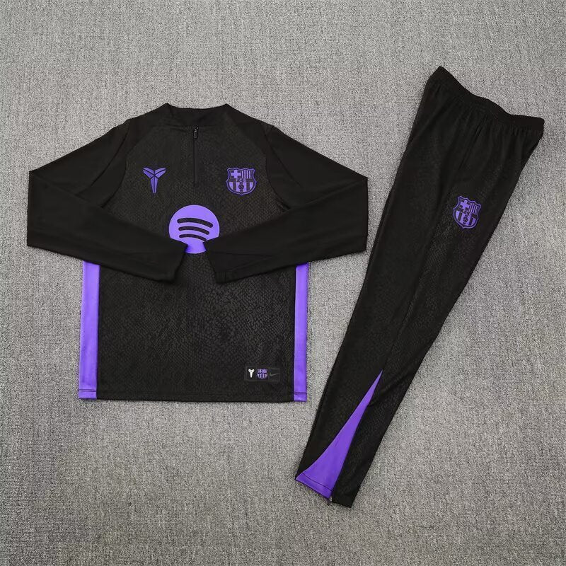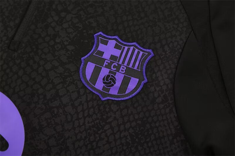 Train with the same focus as the first team in the official 25/26 Barcelona Black [Co-Branded] Half-Zip Training Suit. Built for performance and style, this sleek all-black design delivers comfort whether you’re on the pitch or off it.