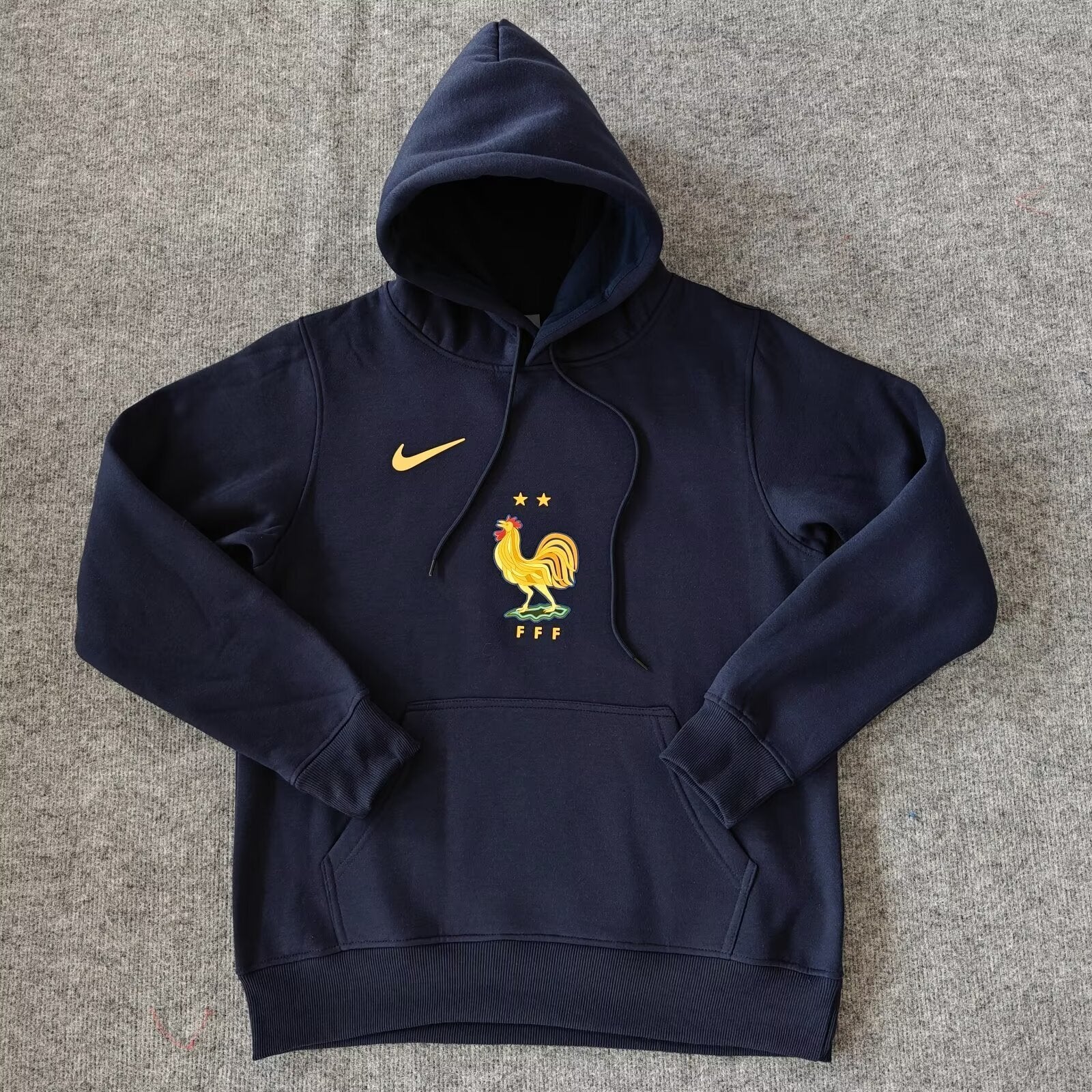 The hoodie proudly features the iconic FFF rooster crest with two championship stars, paired with the Nike swoosh for an authentic look. Designed with a kangaroo pocket and adjustable hood, it combines practicality with team spirit.