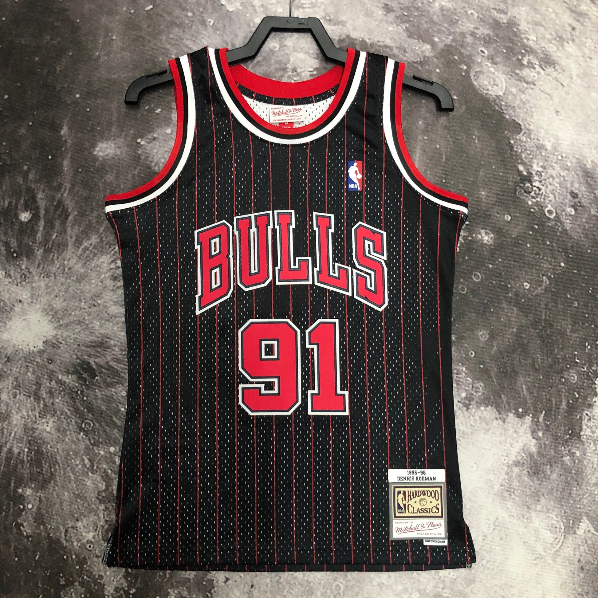 MN hot-pressed vintage jersey: SW Bulls 96 Black Stripe 91 Rodman