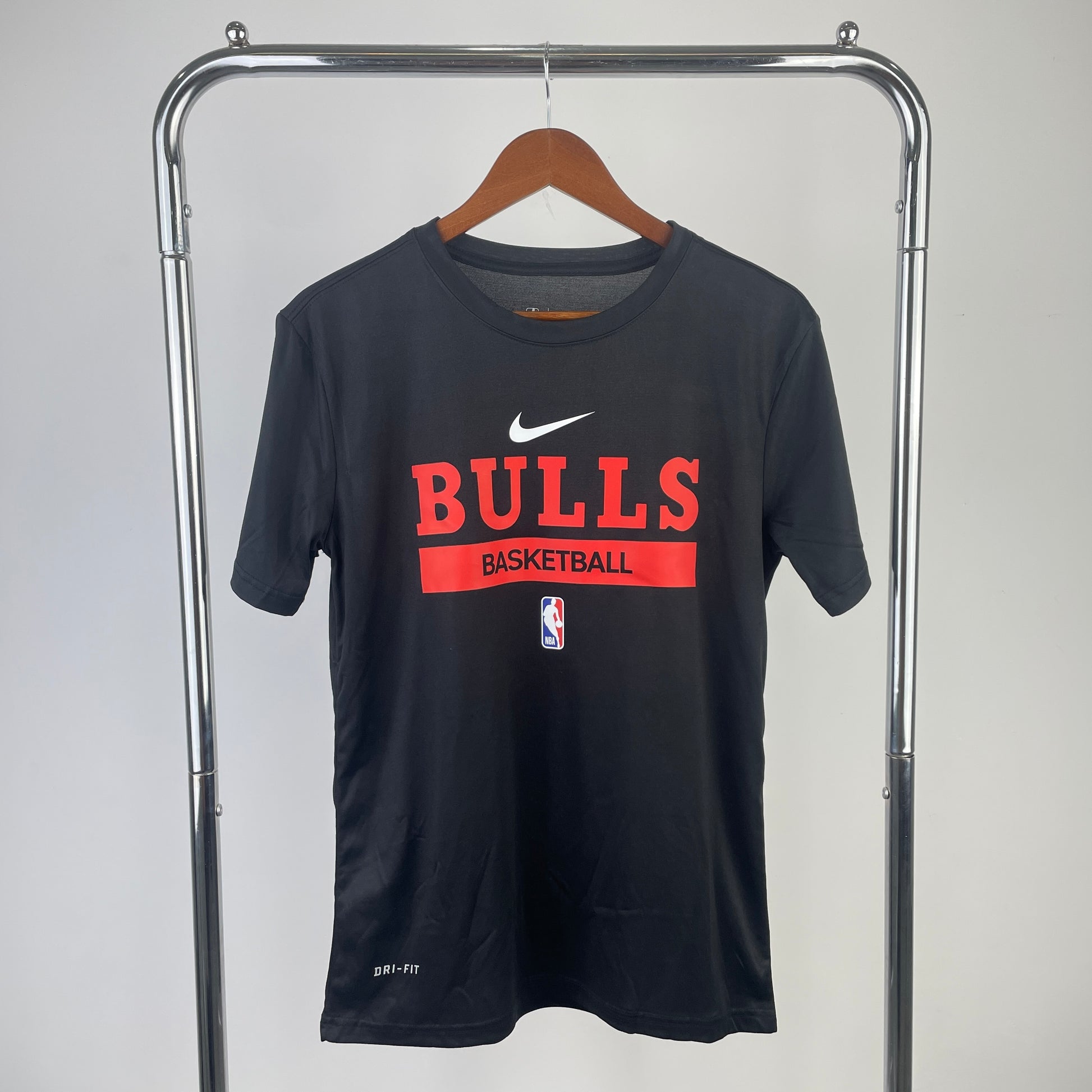 Authentic NBA style: Features bold BULLS Basketball print, Nike swoosh, and official NBA logo.