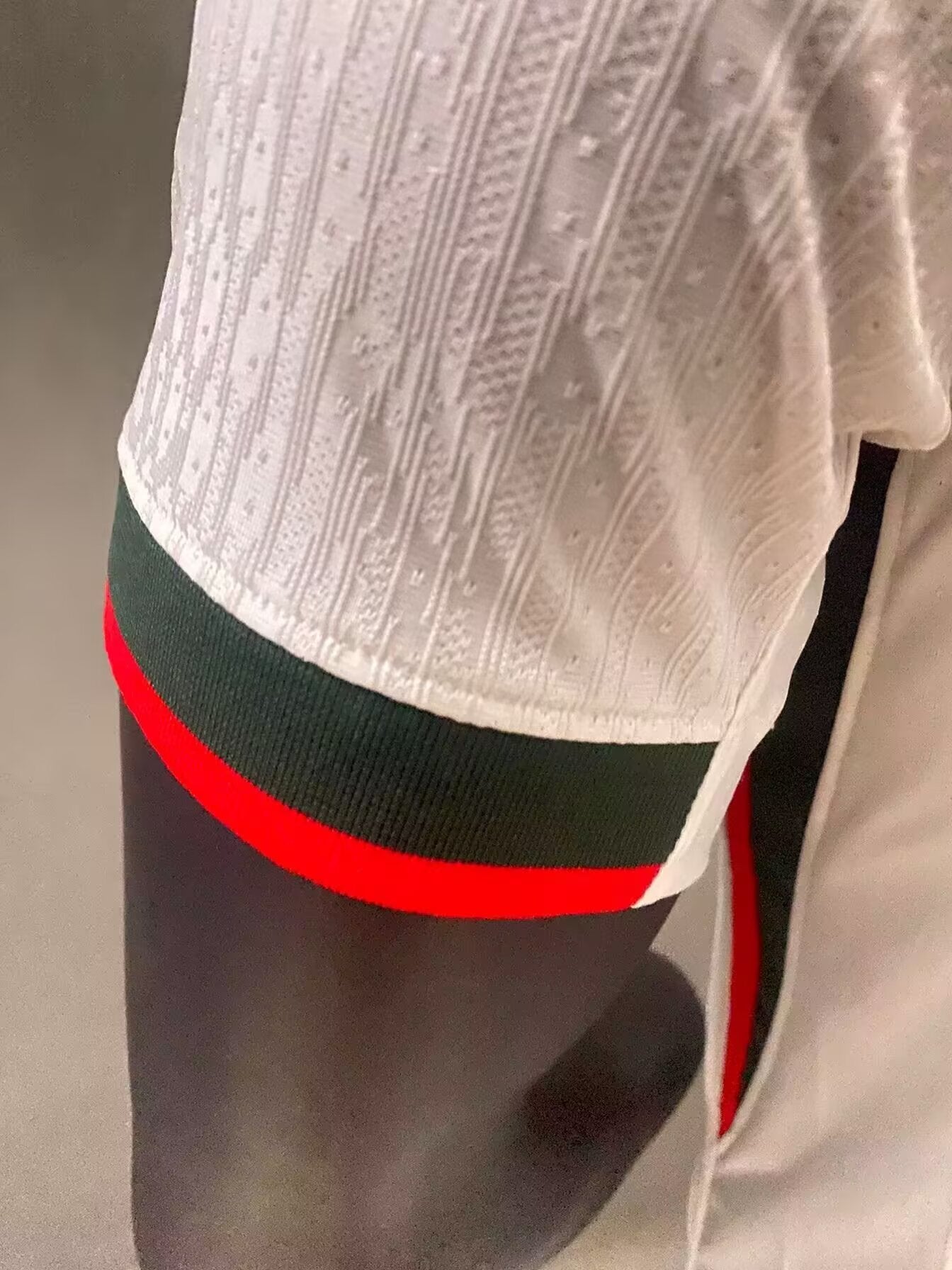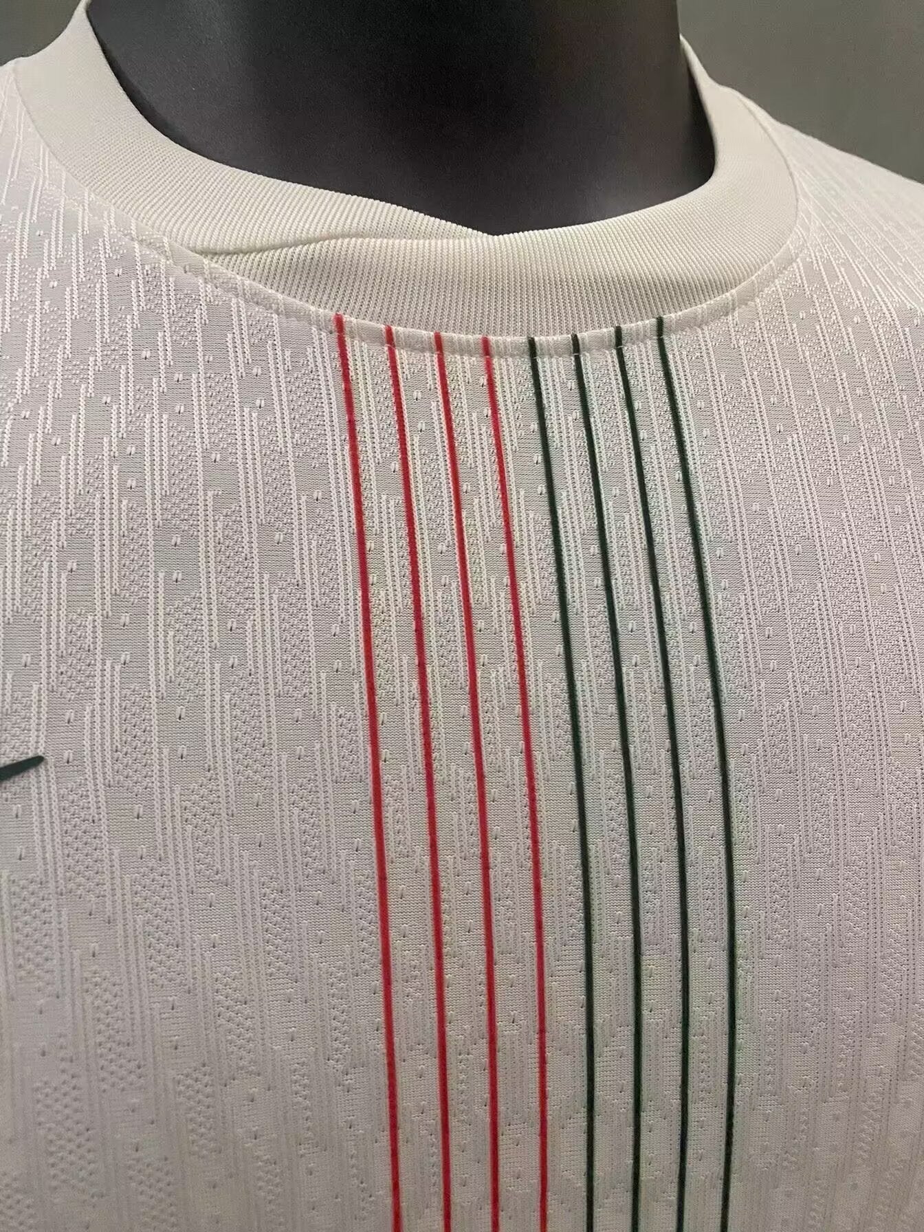 The Chelsea 25/26 Away Kit – Player Edition takes the iconic fan design to the next level with professional-grade quality. The sleek off-white base, highlighted by vertical green and red stripes, embodies Chelsea’s bold character and unique football heritage. Every detail has been fine-tuned for performance on the pitch.