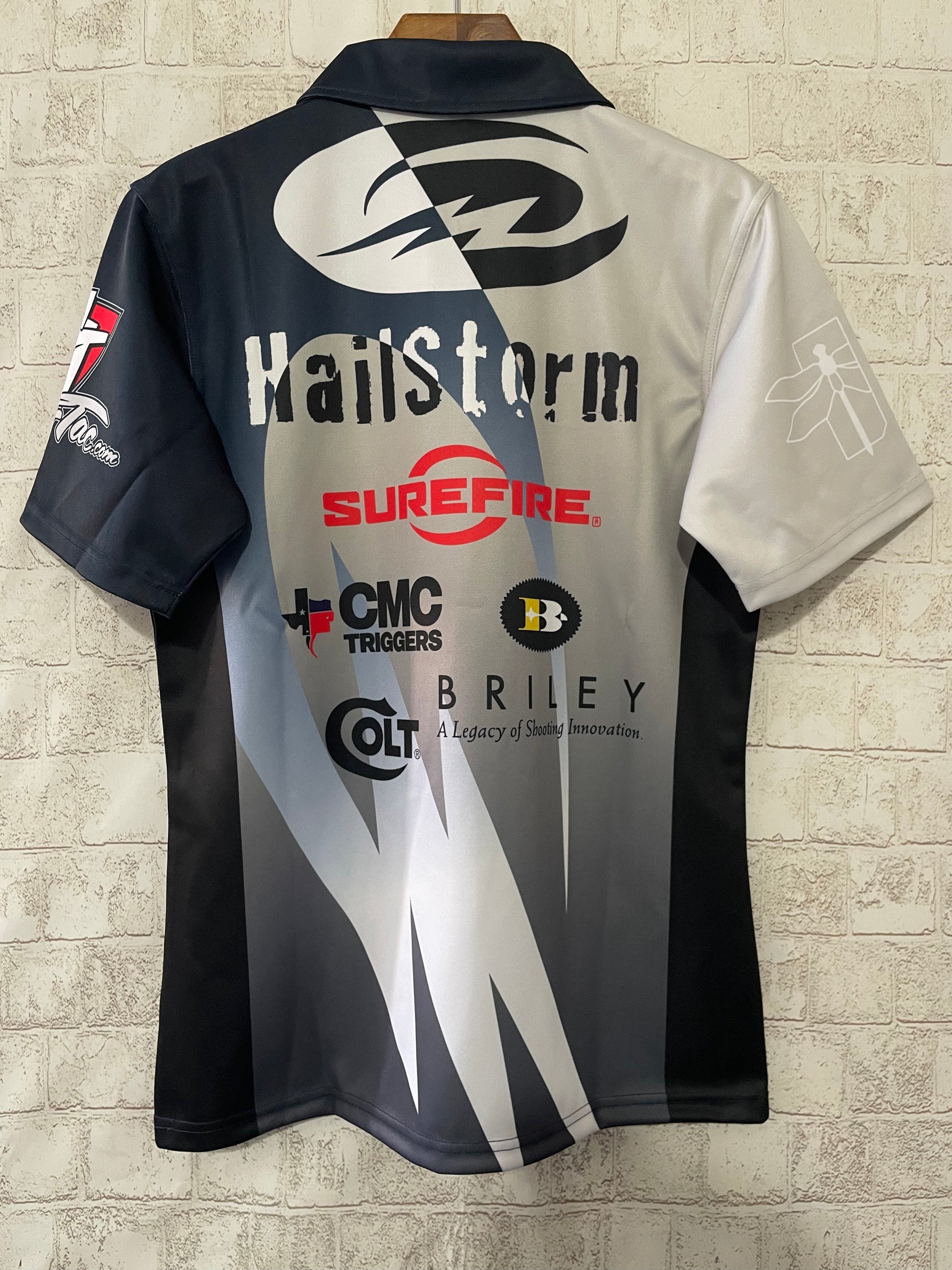Step into the range with confidence in this Tactical Shooting Team Polo Shirt, featuring standout branding from Daniel Defense, Aimpoint, Benelli, Magpul, and American Defense Manufacturing. Designed in a modern black/grey gradient with bold sponsor logos, this polo combines comfort with a professional competitive shooting style.